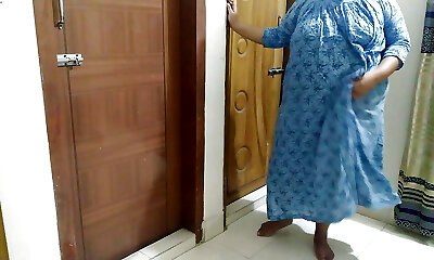 Arab Milf Stepmom stuck under bed in Eid day morning, While cleaning room, Then Son-in-law help her by ass fucking