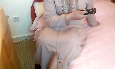 Arab Stepmom Come from office & takes off hijab & burqa & rests on couch Then sonny tickles her Cooch & helps her orgasm - Sex