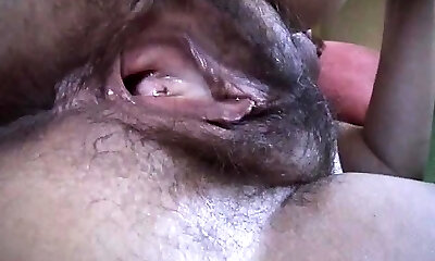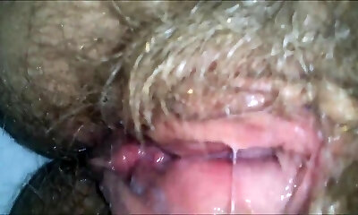 Cum up together. So close you can smell it. Amateur Wife's Hairy Turgid Gash Fuck. Cuming inside. Dripping Creampie