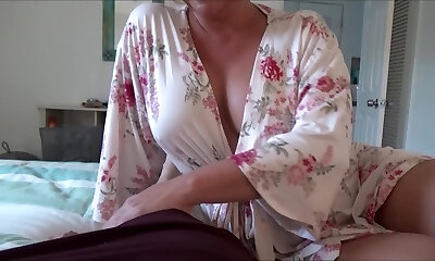 Mature Stepmom helps her stepson with a broken leg relax