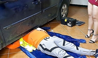 Big ass doll boss let janitor took her panty off and eat her beaver