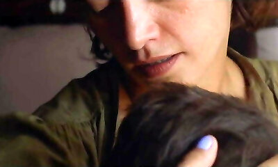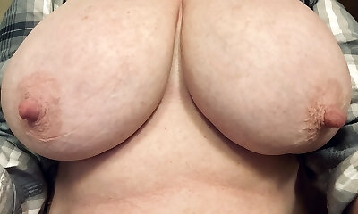 My husband plays with my saggy tits and fiercely fondles my nipples