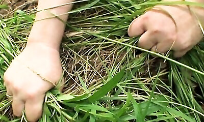 Out in a the forest a highly mature duo has a hardcore picnic